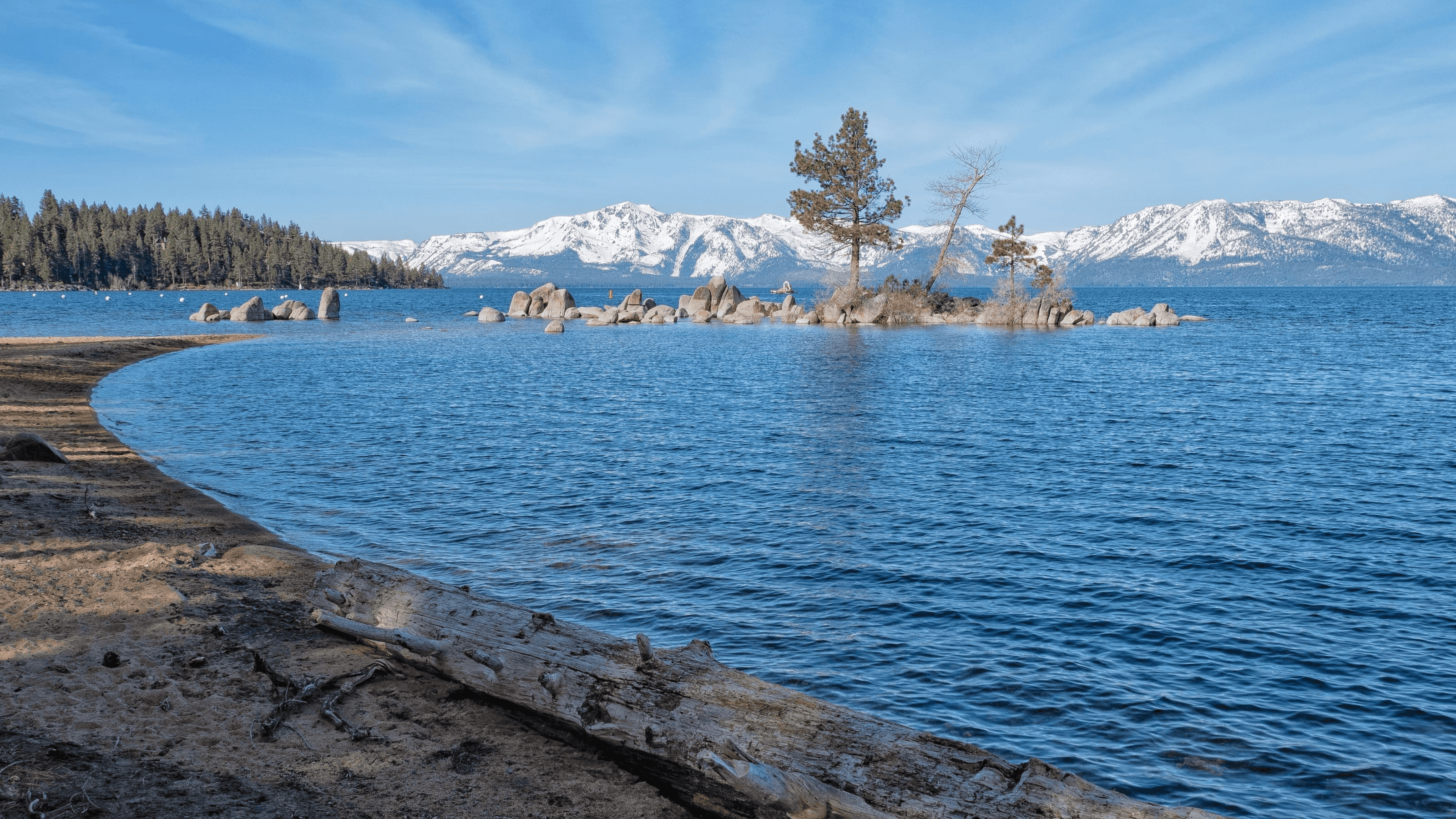 Lake Tahoe, often referred to simply as Tahoe, is a large freshwater lake located in the Sierra Nevada mountains of the United States, primarily in the states of California and Nevada. It is known for its stunning natural beauty, crystal-clear waters, and the surrounding mountain landscapes. The Lake Tahoe region offers a wide range of outdoor recreational activities, including skiing and snowboarding in the winter, as well as hiking, boating, and camping during the summer months. It's a popular destination for both tourists and those seeking a tranquil and nature-centric lifestyle.